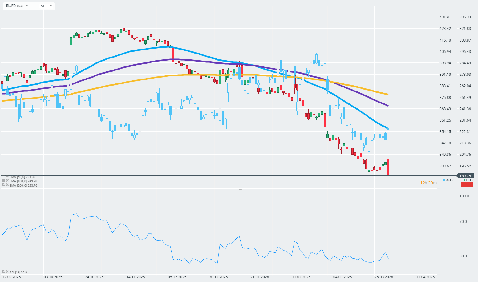 EssilorLuxottica (EL.FR) oslabuje, zatímco L'Oréal (OR.FR) roste — proč?