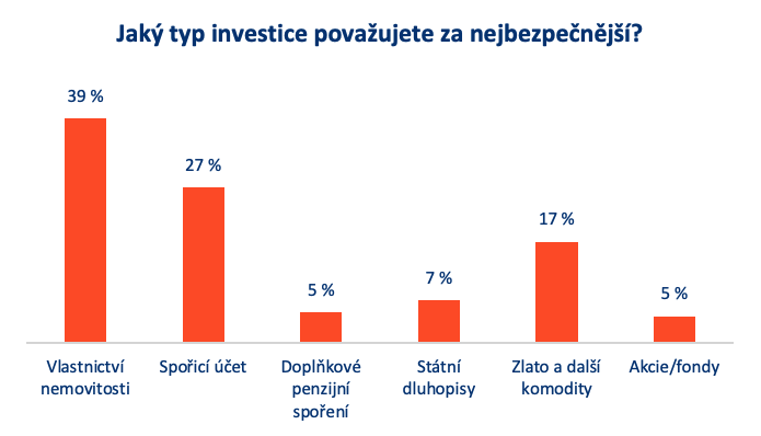 Pokud už lidé investují, mnohem častěji volí finanční instrumenty než nemovitosti. Do investičních nemovitostí směřuje své peníze přibližně šest procent Čechů bez ohledu na to, zda sami bydlí ve vlastním nebo v nájmu. Naopak do akcií či podílových fondů investuje zhruba každý čtvrtý vlastník s hypotékou, zatímco mezi nájemníky je to přibližně každý sedmý, a to přesto, že je považují za rizikové.