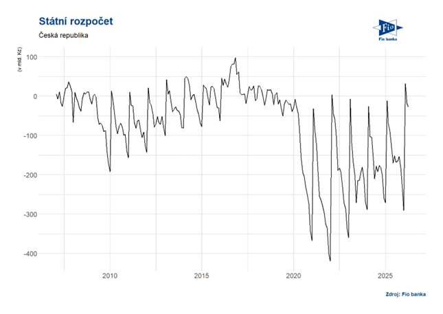 Bilance státního rozpočtu (duben): aktuální hodnota: -126,1 mld. Kč. -
