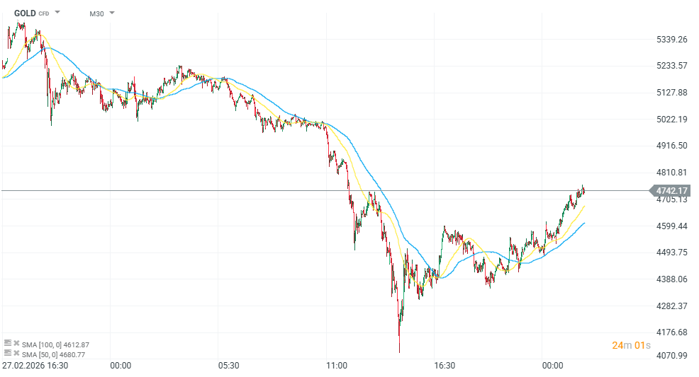 Zlato je historicky považováno za bezpečný přístav v dobách nejistoty, válka v Íránu ale ukázala, že obavy z inflace a scénář vyšších sazeb po delší dobu mohou tento efekt převážit. Během března se cena zlata dostala až k hranici 4 100 USD za unci, od těchto úrovní už ale znovu výrazně posílila a aktuálně se pohybuje nad 4 700 USD. Na drahých kovech je přitom stále vidět vysoká volatilita, která se silně odvíjí od situace na Blízkém východě.