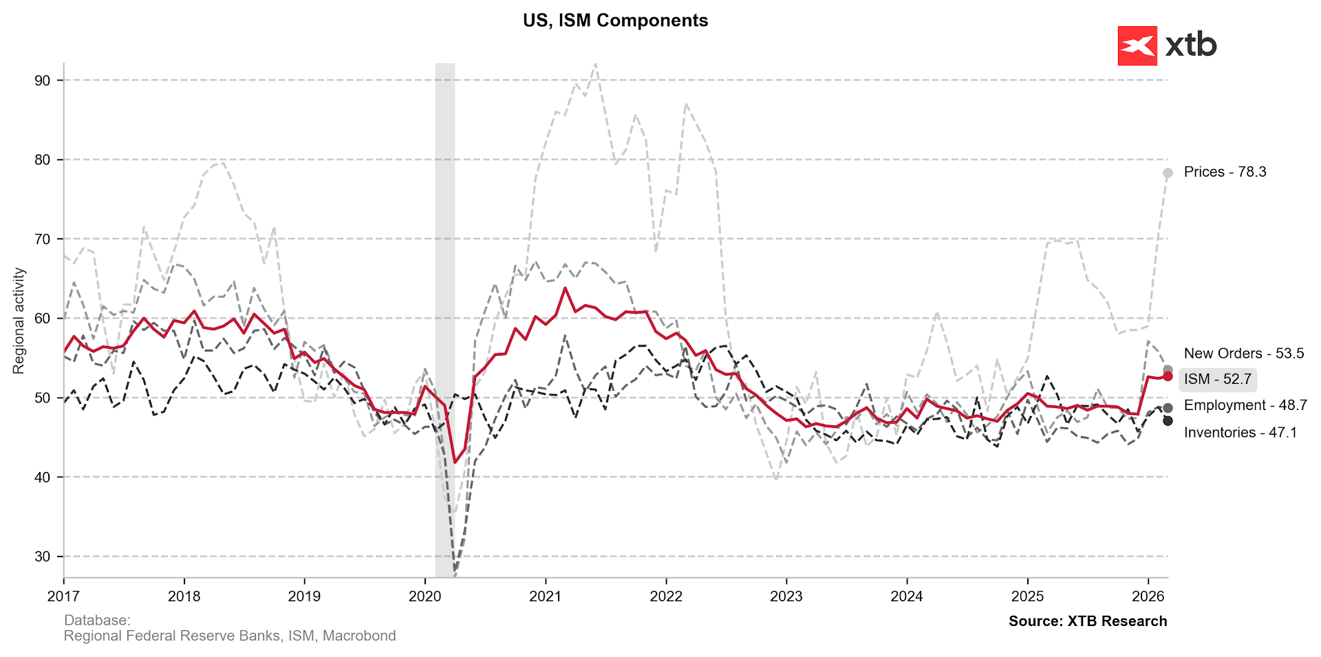 Nedávná data ISM ukázala především prudký nárůst cenových tlaků.