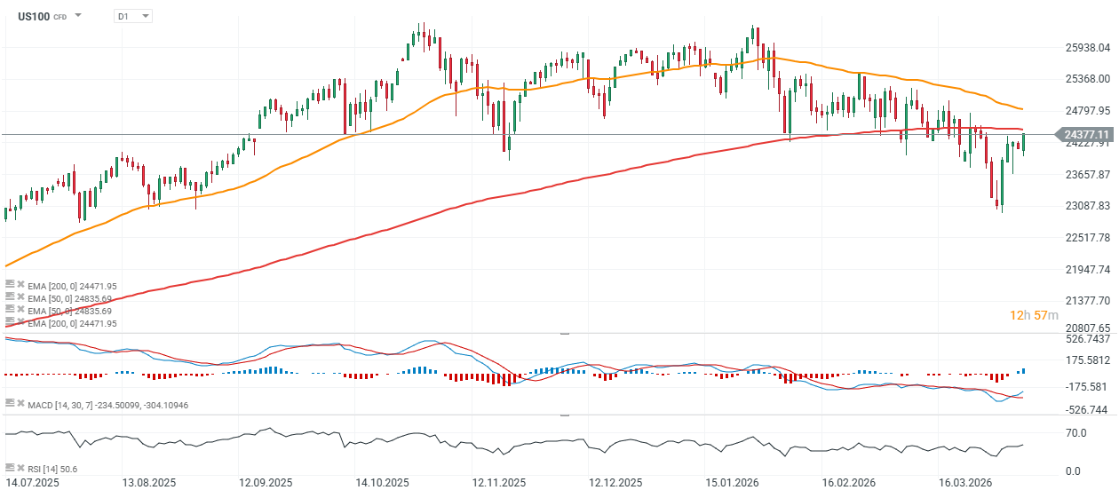 US100 roste o 0,8 %📈