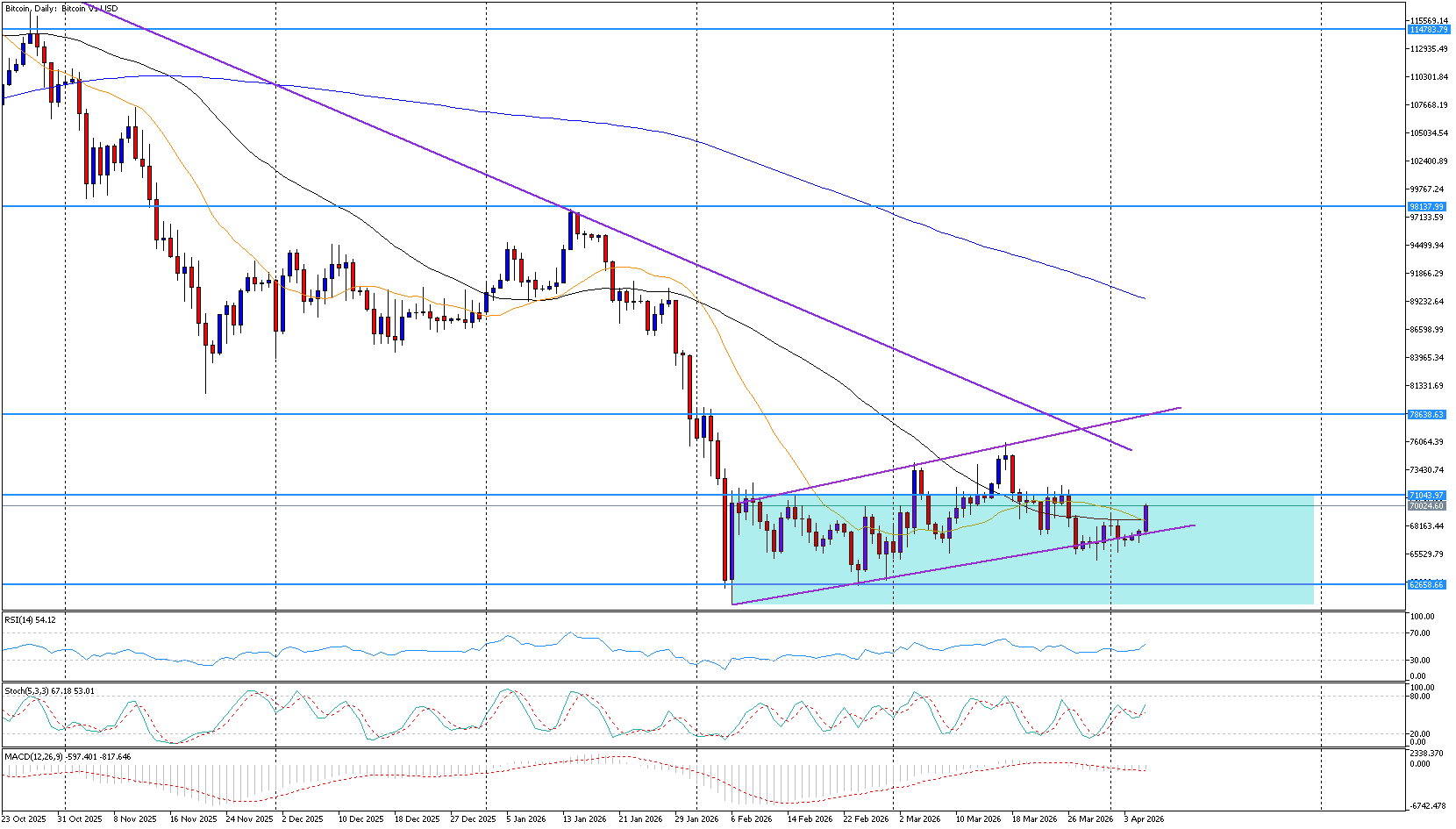 Bitcoin si udržuje pozitivní dynamiku již třetí obchodní seanci v řadě a postupně se přibližuje k důležité technické oblasti, kde se sbíhají 20denní a 50denní klouzavé průměry poblíž 68 900 USD. Aktuální růst nad hranici 69 900 USD představuje nejvyšší hodnoty za více než týden a naznačuje, že trh začíná absorbovat předchozí prodejní tlak a stabilizovat se po nedávném poklesu. Zlepšení nálady potvrzují i indikátory momenta. MACD se posouvá vzhůru z negativního teritoria a překonává svou signální linii, což naznačuje postupné slábnutí medvědího trendu. RSI zároveň roste směrem k neutrální úrovni 50, což ukazuje, že kupci se vracejí do trhu a poklesy již nepřitahují agresivní prodejní aktivitu, ale spíše nové nákupy. Tento vývoj podporuje scénář krátkodobého oživení, i když zatím bez potvrzení silného býčího trendu. Klíčovým momentem bude schopnost ceny udržet se nad oblastí 69 000–70 000 USD a především prorazit nad konvergující klouzavé průměry. Pokud by k tomu došlo, mohl by bitcoin zamířit k první významné rezistenci na 71 500 USD a následně k horní hranici širšího konsolidačního pásma poblíž 74 471 USD. Právě tato úroveň v posledních měsících opakovaně zastavovala růst a její prolomení by mohlo výrazně změnit tržní strukturu ve prospěch býků. V takovém případě by se otevřel prostor pro další expanzi směrem k oblasti 78 949 až 80 615 USD. Na druhé straně však zůstává riziko, že aktuální růst je pouze korekční. Pokud by se cena nedokázala udržet nad klíčovými průměry a znovu sklouzla pod hranici 65 400 USD, tlak na pokles by se mohl obnovit. Takový scénář by otevřel cestu k dolní hranici pásma na 62 500 USD a případně až k oblasti kolem 60 000 USD, která představuje důležitou dlouhodobou podporu. Celkově se bitcoin nadále pohybuje v širokém bočním rozpětí mezi přibližně 65 400 a 74 400 USD. Aktuální oživení naznačuje zlepšení sentimentu, ale pro potvrzení silnějšího růstového trendu bude nezbytné jasné a udržitelné překonání oblasti kolem 70 000 USD. Do té doby zůstává trh v režimu konsolidace, kde budou obchodníci pravděpodobně reagovat především na technické úrovně a krátkodobé změny sentimentu.