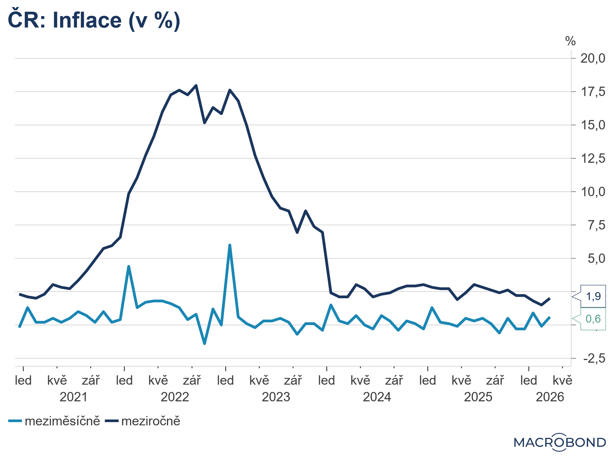 Odhad: Meziroční inflace zrychlila na 1,9 procenta