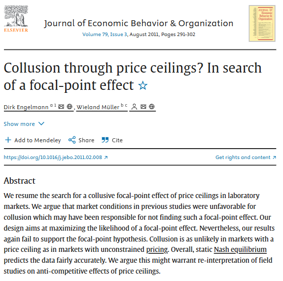Je málo pravděpodobné, že opatření povede ke zdražení pohonných hmot mimo dálnice, jak tvrdí někteří kritici vládního opatření. Proč by například měly třeba pumpy Tank ONO, které dlouhodobě vykazují marži do jedné koruny na litr náhle zdražit tak, že budou mít marži 2,50 Kč/l (maximum, které vládní opatření umožní)? Nemá to dostatečnou oporu ani v ekonomické teorii a akademické literatuře. Například studie zveřejněná v Journal of Economic Behavior & Organization pod názvem "Collusion through price ceilings? In search of a focal-point effect" (viz abstrakt níže) nepotvrzuje, že by strop fungoval jako kotva pro ceny. Autoři studie se snažili prokázat to, že maximální výše administrativně stanoveného stropu (maržového, cenového) představuje referenční bod, k němuž se ceny ukotví. Pokoušeli se tedy, jak plyne z názvu jejich práce, doložit existenci efektu fokálního bodu, tedy administrativně daného maxima, jehož určení a vymáhání povede ke koluzi čili k jakési tiché kartelové dohodě na cenách. A to k takové koluzi, která právě bude spočívat v tom, že se všichni aktéři na trhu tiše dohodnou na uplatňování marže v rozsahu administrativně stanovaného maxima.