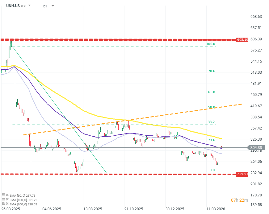 UnitedHealth Group (UNH.US) je dnes nejhorší akcií z indexu S&P 500 a v průběhu dne klesá přibližně o 5 %. Pokles přichází poté, co agentura Bloomberg informovala, že americké ministerstvo spravedlnosti zahájilo antimonopolní vyšetřování společnosti. -
