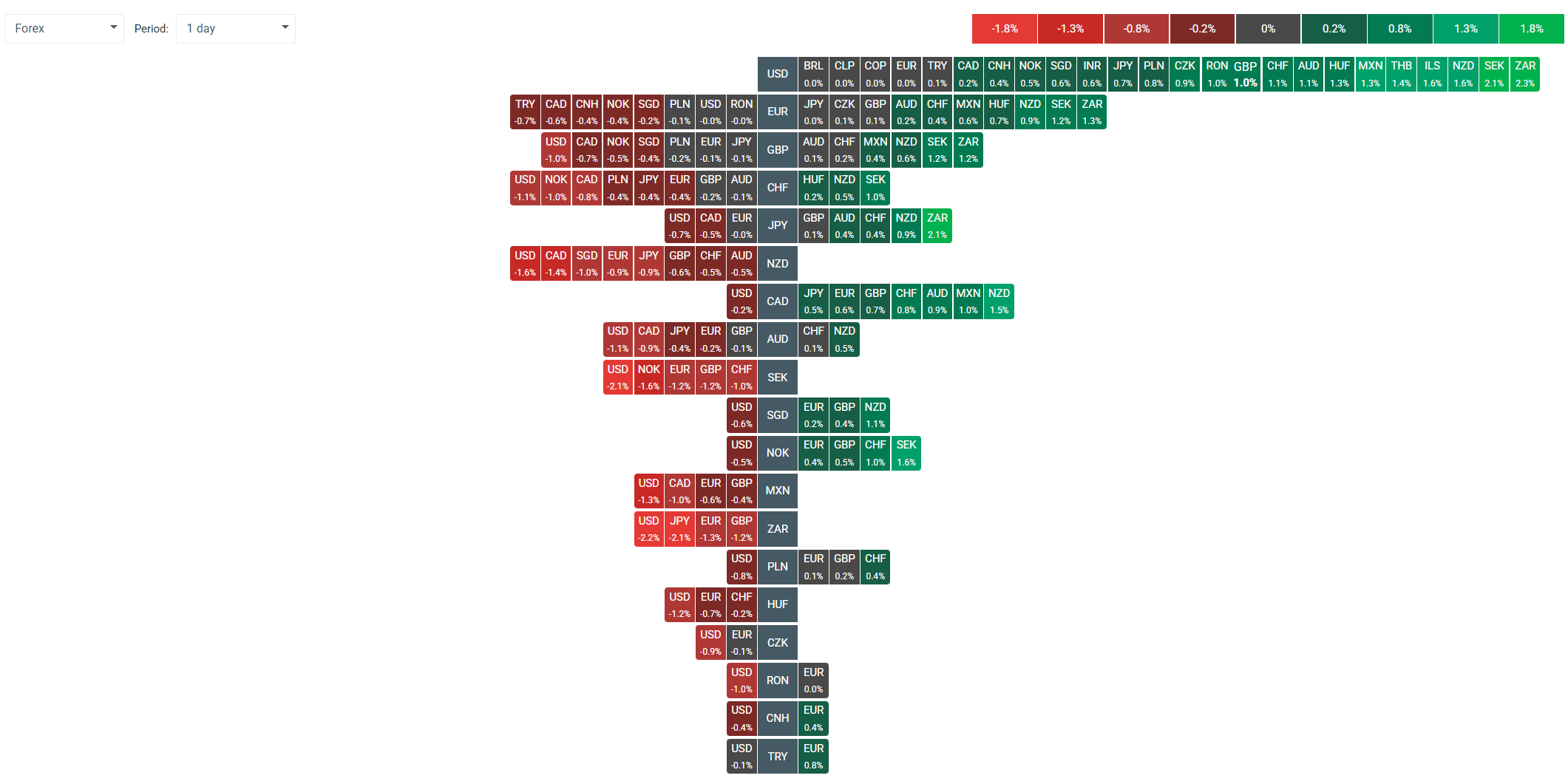 Dvoutýdenní přerušení vojenských operací USA proti Íránu dnes vyvolalo na devizovém trhu prudký otřes a obrátilo velkou část pohybů, které jsme sledovali v posledních týdnech. Napříč širokým spektrem měn jsou nejvíce nakupovány cyklické měny, přičemž v čele stojí NZD, SEK a ZAR, zatímco USD a CAD se nacházejí na samém dně žebříčku výkonnosti. Párům jako NZDUSD, AUDUSD a GBPUSD se daří prudce růst, přičemž těží ze současného růstu futures na americké indexy a z výrazného výprodeje na ropě po největším jednodenním poklesu cen ropy za poslední roky. Dolarový index klesá přibližně o 0,9 %, což v prostředí prudkého návratu rizikového apetitu na akciových trzích oslabuje poptávku po bezpečných aktivech a odsunuje defenzivní pozice v USD a do určité míry i v JPY do pozadí.