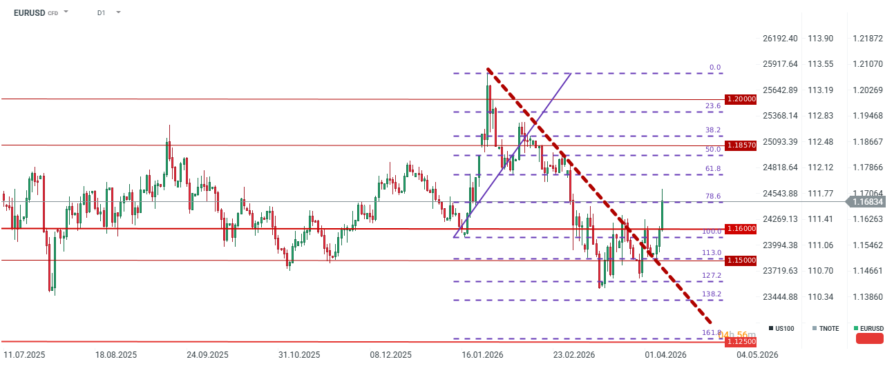 Americký dolar se dostal pod tlak po dohodě o příměří mezi Íránem a USA. Přesto existuje prostor pro část ztrát smazat, pokud zápis z posledního zasedání FOMC vyzní výrazně jestřábím tónem. EURUSD dnes vzrostl směrem k 1,1700, ale nyní výrazně koriguje a existuje šance na pokles pod 1,1650. Pokud však zápis naznačí, že současný ropný šok je pouze přechodný a inflace se vrátí k rychlejšímu zpomalování, měl by se EURUSD vrátit nad 1,1700.