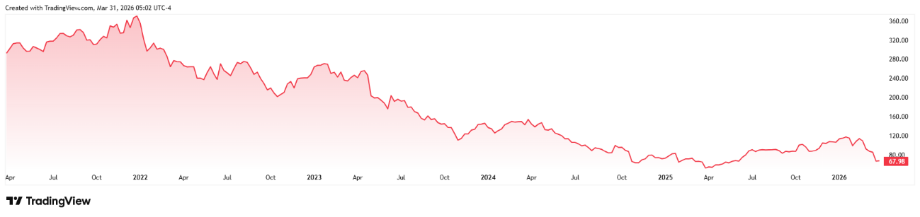 Výkonnost akcií společnosti Estee Lauder za posledních pět let