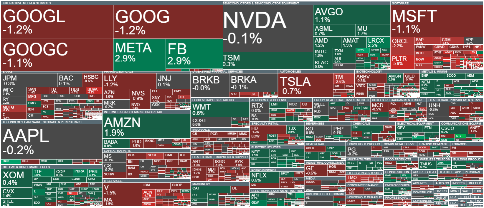 Indexy na Wall Street zahájily dnešní obchodování poklesem v návaznosti na včerejší zveřejnění neuspokojivých výsledků společností Alphabet a Tesla po uzavření peněžní seance. Index S&P 500 otevřel o 0,9 % níže, Dow Jones se při zahájení seance obchodoval o 0,5 % níže, zatímco Nasdaq se propadl o 1,5 %. Index Russell 2000 s malou kapitalizací otevřel o 0,5 % níže. -