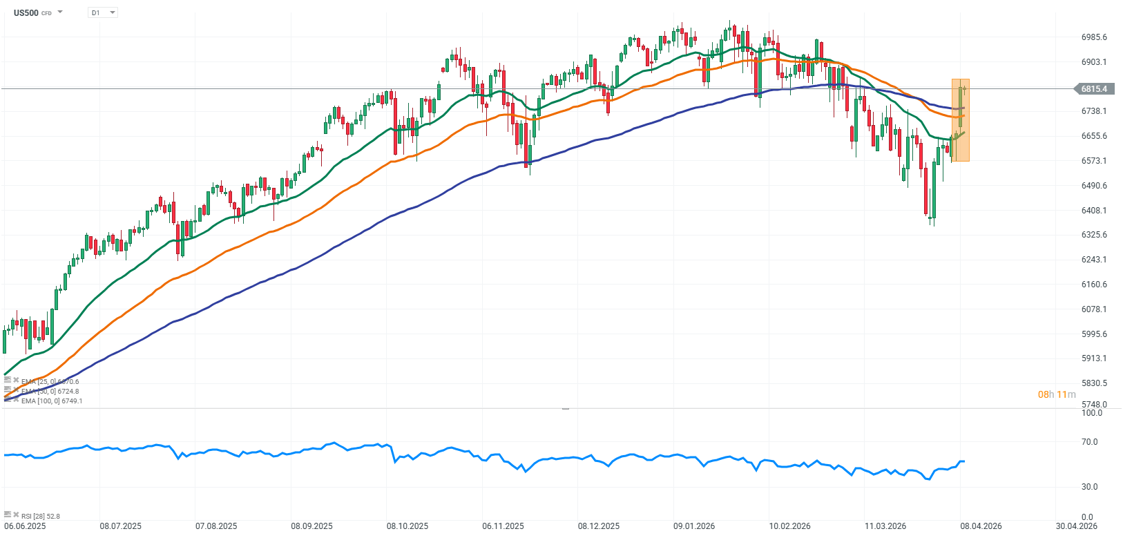 Futures na S&P 500 (US500) dnes mírně oslabují. Trh reaguje nejen na o něco slabší americká makrodata, která naznačují zpomalení ekonomického růstu, ale především na rostoucí geopolitickou nejistotu kolem Íránu a Blízkého východu. Regionální napětí a rozporná vyjádření ohledně podmíněného příměří udržují investory v opatrnosti a omezují ochotu podstupovat riziko.