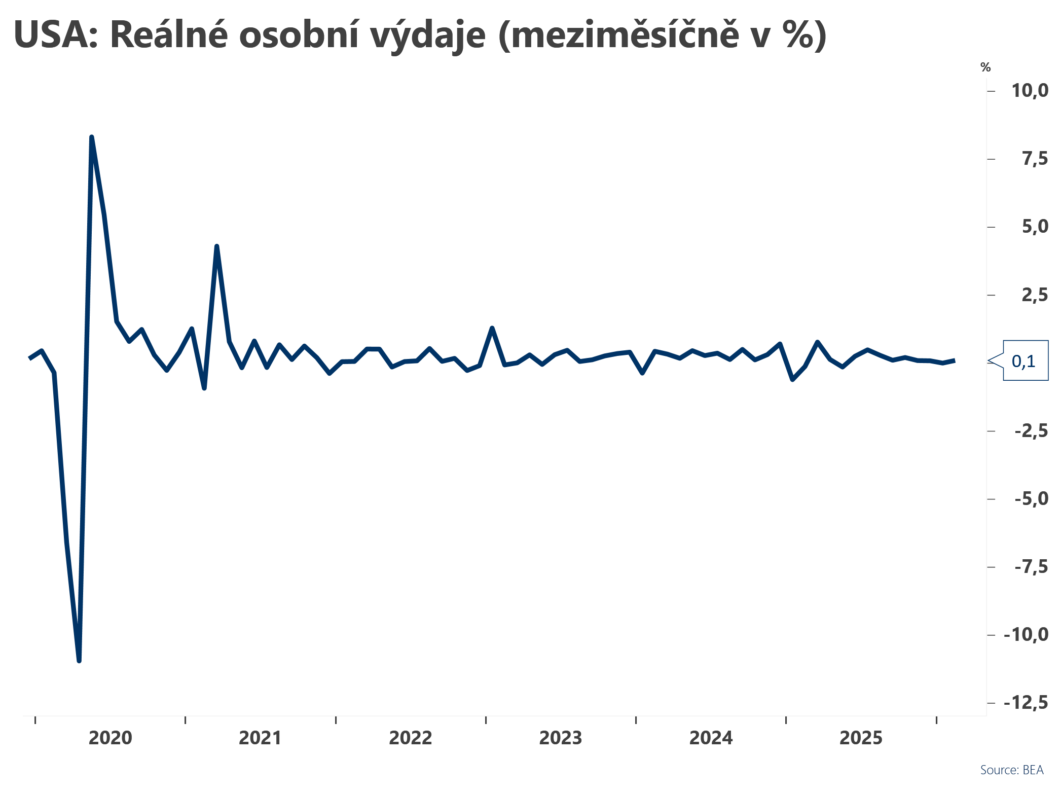 Reálné osobní výdaje v únoru vzrostly o 0,1 % meziměsíčně oproti lednu, kdy po revizi spotřeba fakticky stagnovala. Trhy očekávaly růst o 0,2 % meziměsíčně.