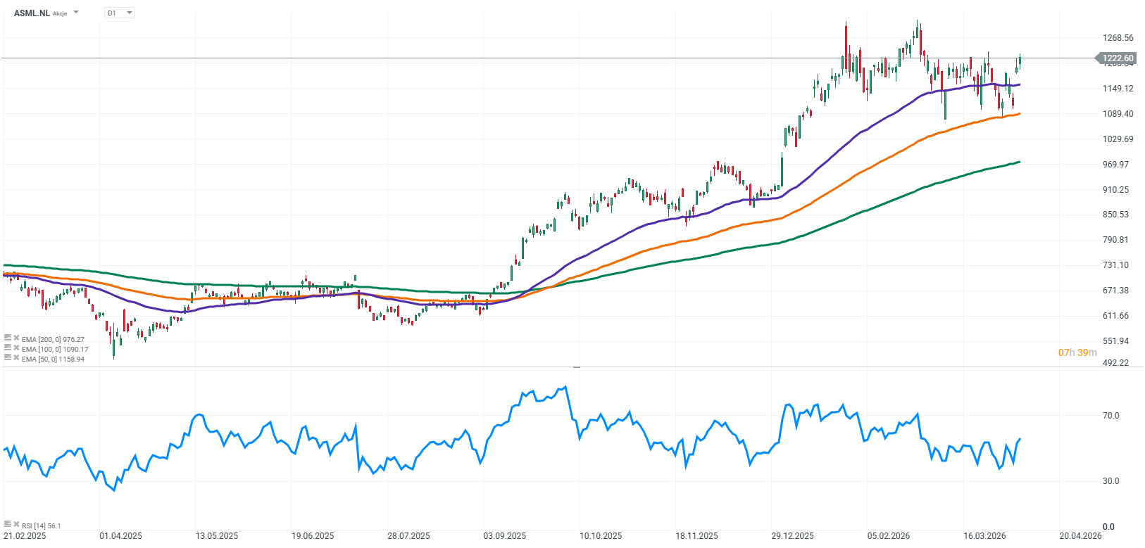 Z fundamentálního pohledu je silný rostoucí trend odůvodněn rostoucí poptávkou po technologiích ASML, vysokou provozní efektivitou a schopností společnosti generovat hotovost. Rekordní objednávky, investice do vývoje a pozice lídra polovodičového průmyslu se přímo promítají do důvěry investorů. Kombinace stabilních fundamentů a pozitivního tržního sentimentu vytváří trvalou dynamiku růstu, která se jasně odráží v grafu akcie.