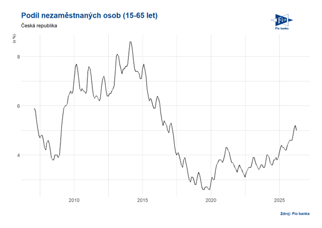 ČR: Míra nezaměstnanosti v březnu klesla na 5,0 % při očekávání 5,1 %