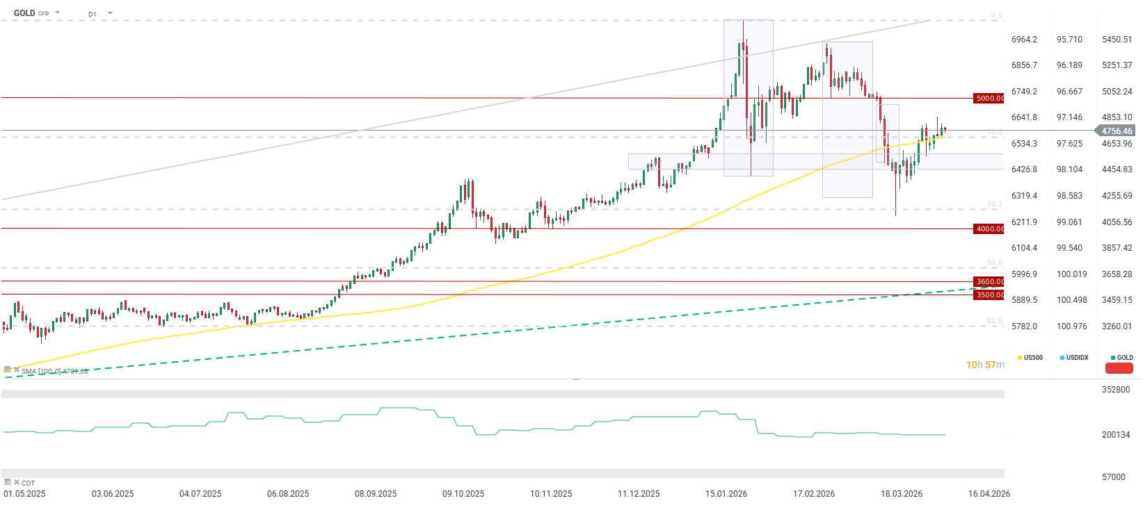 Pokud by se Hormuzský průliv znovu otevřel do konce dubna, ceny zlata by se měly udržitelně vrátit nad hranici 5 000 USD, s možností dosažení 6 000 USD do konce roku kvůli obavám z amerického dluhu a politické nejistotě kolem mid-term elections. Současné oživení zatím ještě nesignalizuje nový býčí trh a připomíná spíše korekci v rámci downtrendu, ale průraz nad 5 000 USD by mohl změnit dlouhodobý příběh tohoto kovu.