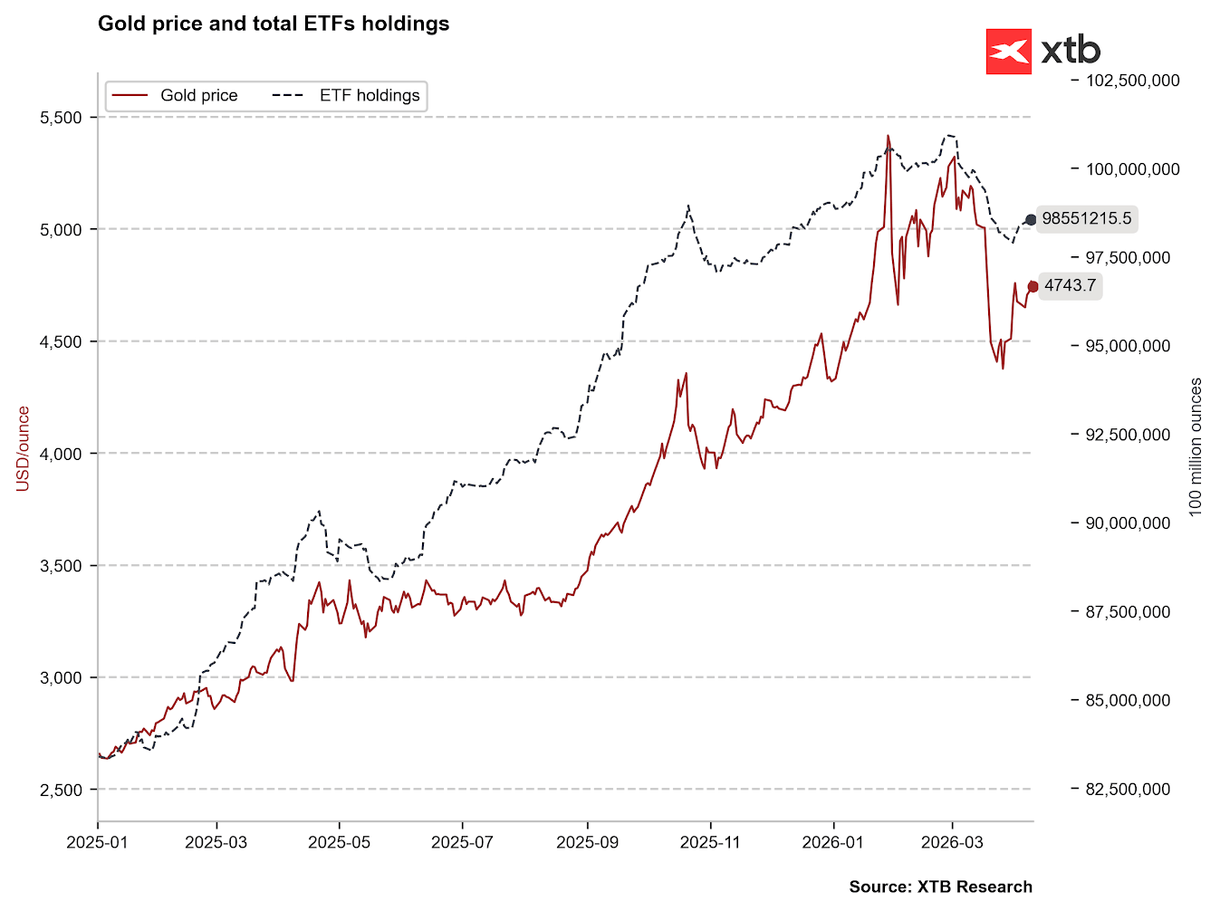 Od začátku března 2026 ETF zrychlily odprodej zlata, a to kvůli výběru zisků a taktickému přesunu do hotovosti. Za pozornost stojí, že velké množství hedge fondů výrazně navýšilo své pozice ve zlatě ve 4. čtvrtletí 2025, takže jejich prudký odchod v březnu je nejpravděpodobnějším vysvětlením nedávného cenového pohybu.