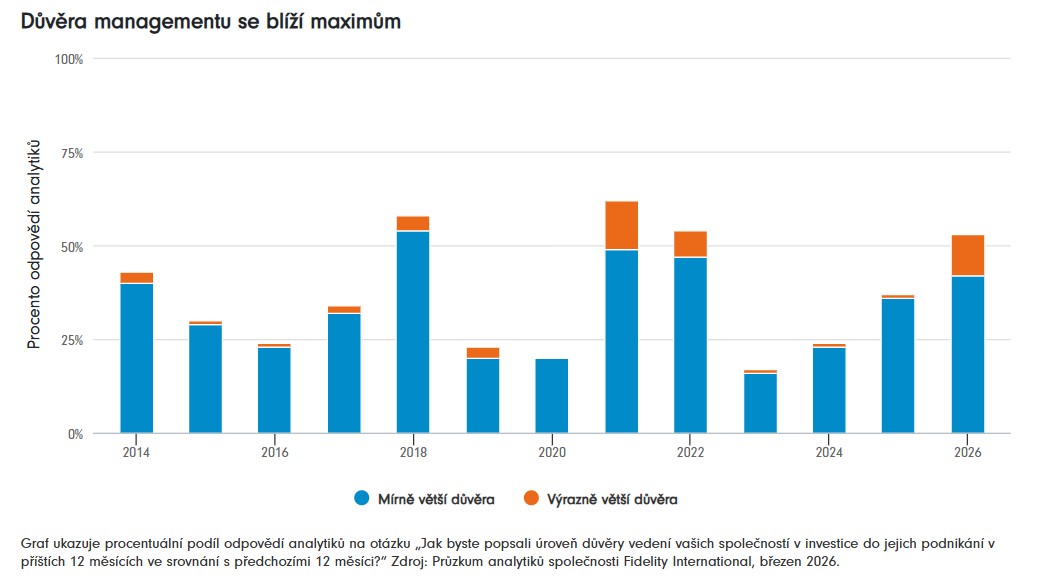 To jsou hlavní závěry letošního průzkumu Fidelity Intl, který je výsledkem podrobných pozorování více než 120 specializovaných analytiků, kteří se zabývají společnostmi po celém světě s neuvěřitelnou podrobností. Zaměřují se na akcie i dluhopisy a podali zprávu z více než 20 000 schůzek s vrcholovými manažery za poslední rok. A celkově je poselství pozitivní.