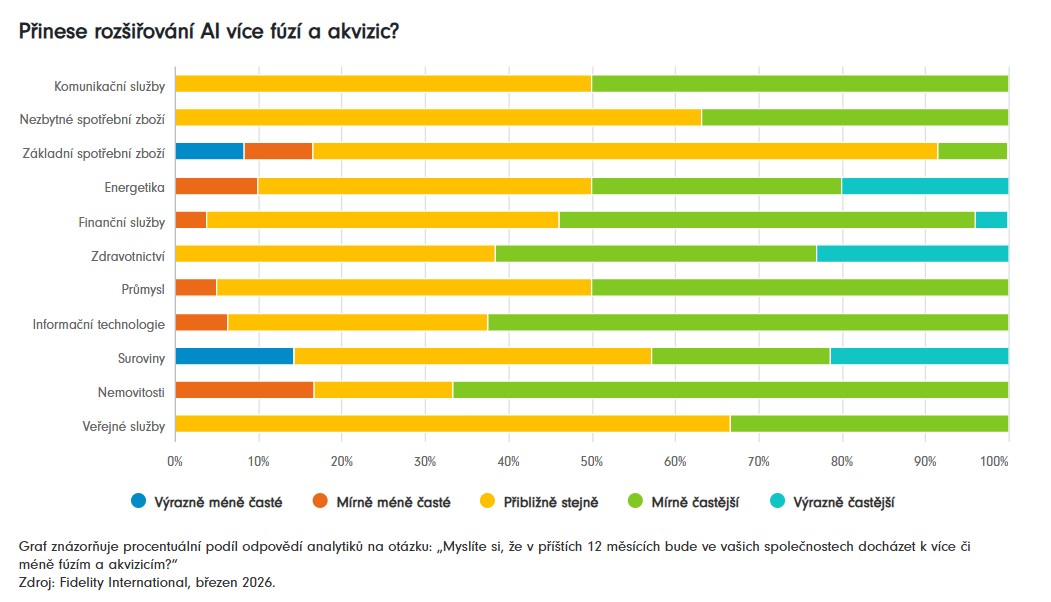 Klíčová slova: Inflace | Nezaměstnanost | Analytik | Poptávka | Rizika | Kapitál | Akcie | Transakce | Ekonomika | Investice | Komodity | Marže | Riziko | Ukazatel | Analytici | Dluhopisy | Fundamenty | Optimismus | Výsledky | Ekonomický výhled | Investiční | Ropy | ROCE | Microsoft | Snižování úrokových sazeb | Fundamentální ukazatele | Fidelity International | Inflační tlaky | Walmart | Citi | Stagnace | Výhled | Mzdy | Průzkum | Příjmy | Očekávání | Podniky | Výplaty dividend | Objem | Rozvoj | Objem objednávek | Návratnost | Geopolitická situace | Ukazatele | Google | Pokles | Situace | Výdaje | Vývoj | Průzkum Fidelity | Spotřebitelé | Domácnosti | Průmyslové komodity | Růst | Umělá inteligence | Pracovní síly | Manažeři | Umělé inteligence | Costco | Ocenění | Důvěra | Investice společnosti | Fidelity | Průzkum analytiků | Objem transakcí | Technologie | AI | Odvětví | Boom | Společnosti | ANO | Zdravotnictví | Pozornost | Meta | Rozšíření | Datové centrum | Centrum | Energetické podniky | Rozšíření umělé inteligence | Vice | Konflikt na Blízkém východě | Pozorování | ProCent | Suroviny | Vlády | Zvýšení produktivity | Rostoucí nezaměstnanost | Implementace | Růst dividend | Datová centra | Navýšení | Výdaje na obranu | Náklady | Největší riziko | Větší hráči | Výrobce polovodičů | Prostředky |