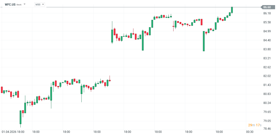 Wells Fargo zklamal na úrovni tržeb. Celkové tržby dosáhly 21,45 miliardy dolarů, což bylo pod odhadem analytiků ve výši 21,77 miliardy dolarů. Čistý úrokový výnos 12,1 miliardy dolarů rovněž zaostal za očekáváními. Přesto čistý zisk vzrostl o 7 % na 5,25 miliardy dolarů a EPS stoupl o 15 % na 1,60 USD. CEO Charlie Scharf to přisuzuje investicím do všech segmentů businessu. Akcie se před otevřením trhů pohybují na úrovni 87 USD.