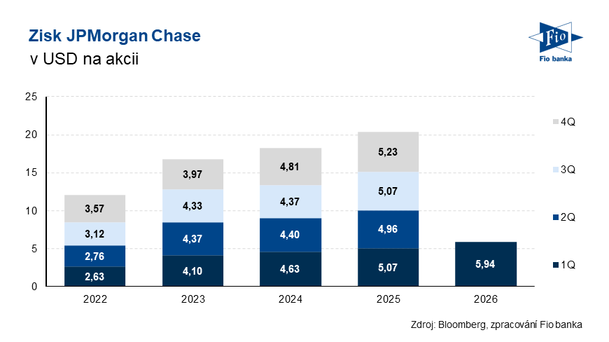 Klíčová slova: Analytik | Americká ekonomika | Rizika | Kapitál | Akcie | Aktiva | Bloomberg | Dividendový výnos | Ekonomika | P/E | Riziko | Ukazatel | Volatilita | Výkonnost | Výnos | Zisk na akcii | Analytici | Banky | USD | Barclays | Obchodování | JPMorgan | Zisk | Výsledky | Obchodování s akciemi | Investiční bankovnictví | EPS | Banka | Fio banka | Cena | Fio | Investiční | Cílová cena | ROE | Bankovnictví | JPMorgan Chase | Nejistota | Kapitalizace | Výhled | Poplatky | Konsensus | Výnosy | Očekávání | Jamie Dimon | Podniky | Geopolitické napětí | Úrokový výnos | Stav ekonomiky | Obchodování dluhopisů | Čistý zisk | Reálné ekonomiky | ROTE | Generální ředitel | Nejistoty | Regulátoři | Hospodaření | Kapitálová přiměřenost | Výsledky hospodaření | Meziroční růst | Vývoj | Spotřebitelé | Růst | Americká banka | Banka JPMorgan | Ekonomiky | Války | Růst výnosů | JDE | Představenstvo | Šéf banky | Ceny | Rentabilita | JPM | Ceny aktiv | Vývoj akcie | Konsensus trhu | Čisté úrokové výnosy | Úrokové výnosy | Společnosti | Společnost | Výsledky společnosti | Celoroční výhled | 3М | Správa | Akcie JPMorgan | Aktiva pod správou | Vklady | KBW | Vice | Milník | Historický milník | Správy majetku | AUM | Očištěný zisk na akcii | Rentabilita vlastního kapitálu | Volatilita cen | Nižší náklady | Fio banka, a.s. | Michal Bárta | Náklady | Fiskální deficity | 1Q 2025 | Rok 2026 |