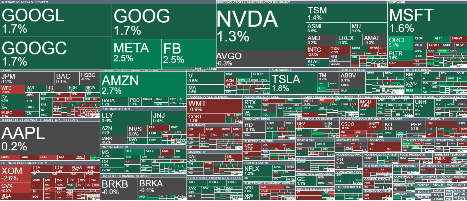 Současně přináší sezona výsledků v bankovním sektoru smíšené signály. Americké banky jako celek zveřejňují solidní, ale ne výjimečné výsledky, což ukazuje, že prostředí zůstává náročné a má daleko k euforii. Ve výsledcích jsou zřetelně vidět i „mouchy v ointmentu“, ať už v podobě opatrnějšího výhledu nebo slabší dynamiky v některých obchodních segmentech, což tlumí nadšení a potvrzuje, že současné tržní podmínky zůstávají nejisté. Finanční sektor si přesto dál udržuje solidní ziskovost, zejména díky obchodní aktivitě a relativně stabilním tokům v investičním bankovnictví, což pomáhá bránit zhoršení sentimentu.