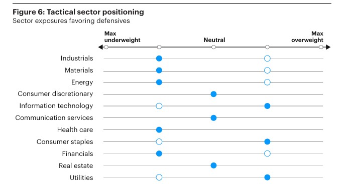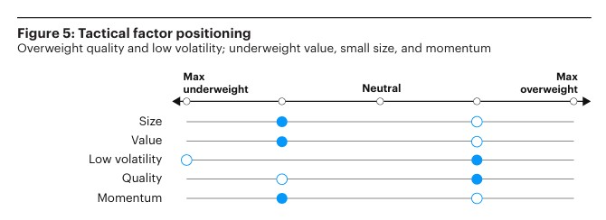V rámci tohoto přístupu nadále držíme mírné nadvážení akcií vůči dluhopisům, avšak s jasným důrazem na defenzivnost a viditelnost zisků spíše než na sázku na cyklické zrychlení. U akcií nadvažujeme defenzivní faktory, jako jsou kvalita a nízká volatilita, které historicky v režimu zpomalování vykazují lepší výkonnost díky stabilnějším cash flow a nižší citlivosti na změny růstové dynamiky. Na sektorové úrovni preferujeme expozice s defenzivními charakteristikami a robustními fundamenty, zejména informační technologie, zdravotnictví a sektor základního spotřebního zboží, na úkor více cyklických segmentů.