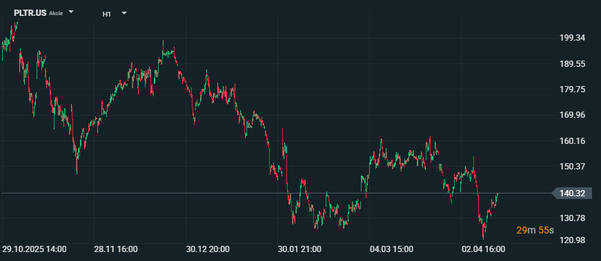 Akcie společnosti Palantir Technologies se 15. dubna obchodovaly za 140,27 USD, což znamená, že titul zůstával zhruba 32 % pod rekordním maximem 207,52 USD z 3. listopadu 2025. Pokles přišel navzdory silným posledním provozním výsledkům a zdá se, že souvisí hlavně s tlakem na valuace a širším výprodejem softwarového sektoru, protože investoři znovu přehodnocují, jak rychle mohou nové AI nástroje narušit zavedené softwarové firmy. Zdroj: xStation5