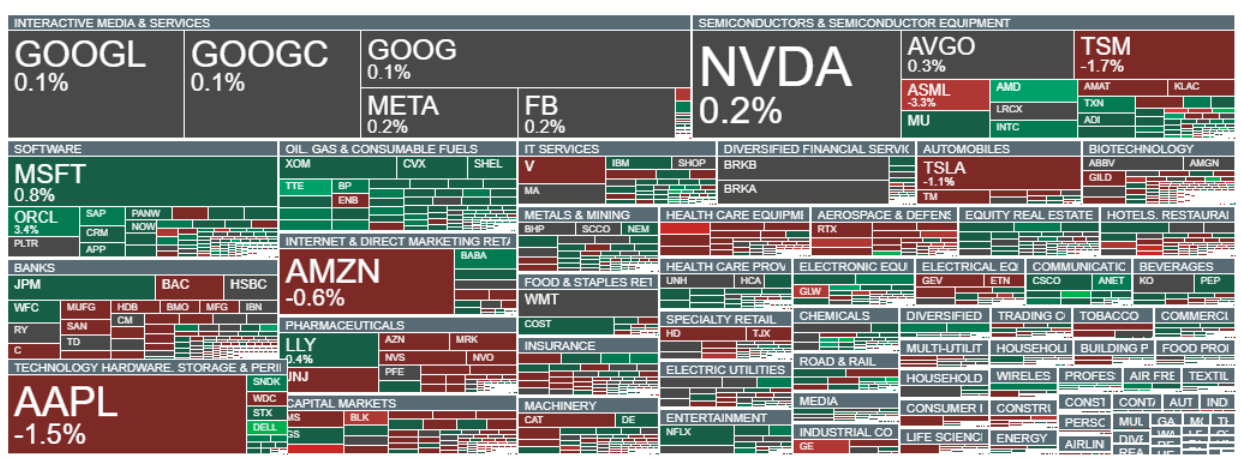 Na začátku obchodní seance v USA převládají poklesy většiny akcií. Nicméně mnoho velkých technologických společností, včetně Alphabetu, Nvidie a Applu, vykazuje mírné zisky. Hlavní indexy stagnují, zatímco index malých společností US2000 klesá o 0,50 %. Obnovení síly dolaru, který byl dříve během dne slabý, vytváří tlak na akciový trh. USD se zotavuje po zveřejnění silnějších dat JOLTS. -