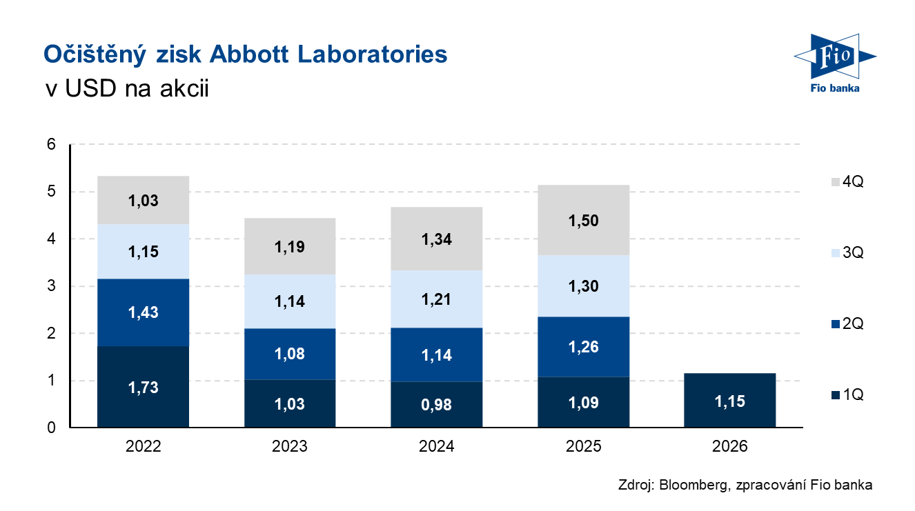 Americká zdravotnická společnost Abbott Laboratories zveřejnila své výsledky hospodaření za první kvartál roku 2026. Ačkoliv firma mírně překonala odhady Wall Street na úrovni tržeb a splnila očekávání ohledně zisku, tak investoři negativně reagují na snížený výhled celoročního očištěného zisku na akcii, do kterého vedení podniku promítlo náklady a zředění spojené s nedávno dokončenou akvizicí diagnostické společnosti Exact Sciences.