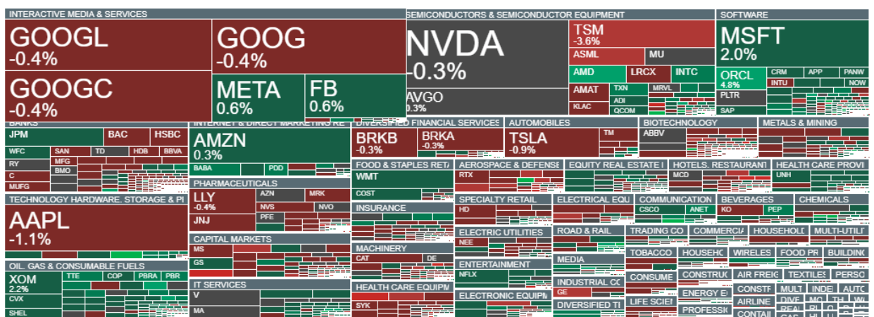 Na americkém akciovém trhu dnes vyčnívají akcie společností Microsoft, AMD, Intel a Oracle, zatímco TSMC a ASML klesají navzdory silným čtvrtletním výsledkům. Silně si vede také ropný a plynárenský sektor.