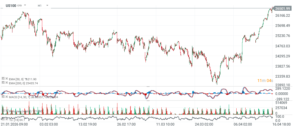 Americké akciové indexy dnes rostou a z velké části ignorují návrat cen ropy vzhůru, který je poháněn nejistotou kolem možné mírové dohody s Íránem a stále silnými makrodaty z americké ekonomiky. Hotovostní Nasdaq 100 dnes roste o 0,45 % a smazal své ztráty z úvodu seance.