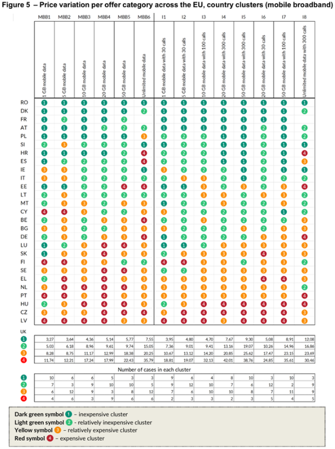 Ukazuje to srovnání Evropské komise napříč jednotlivými typy tarifů. Česká republika se ve většině sledovaných kategorií pohybuje v horších cenových pásmech. Jinými slovy, nejde o výjimku u jednoho typu tarifu, ale o systémový problém napříč celou nabídkou.