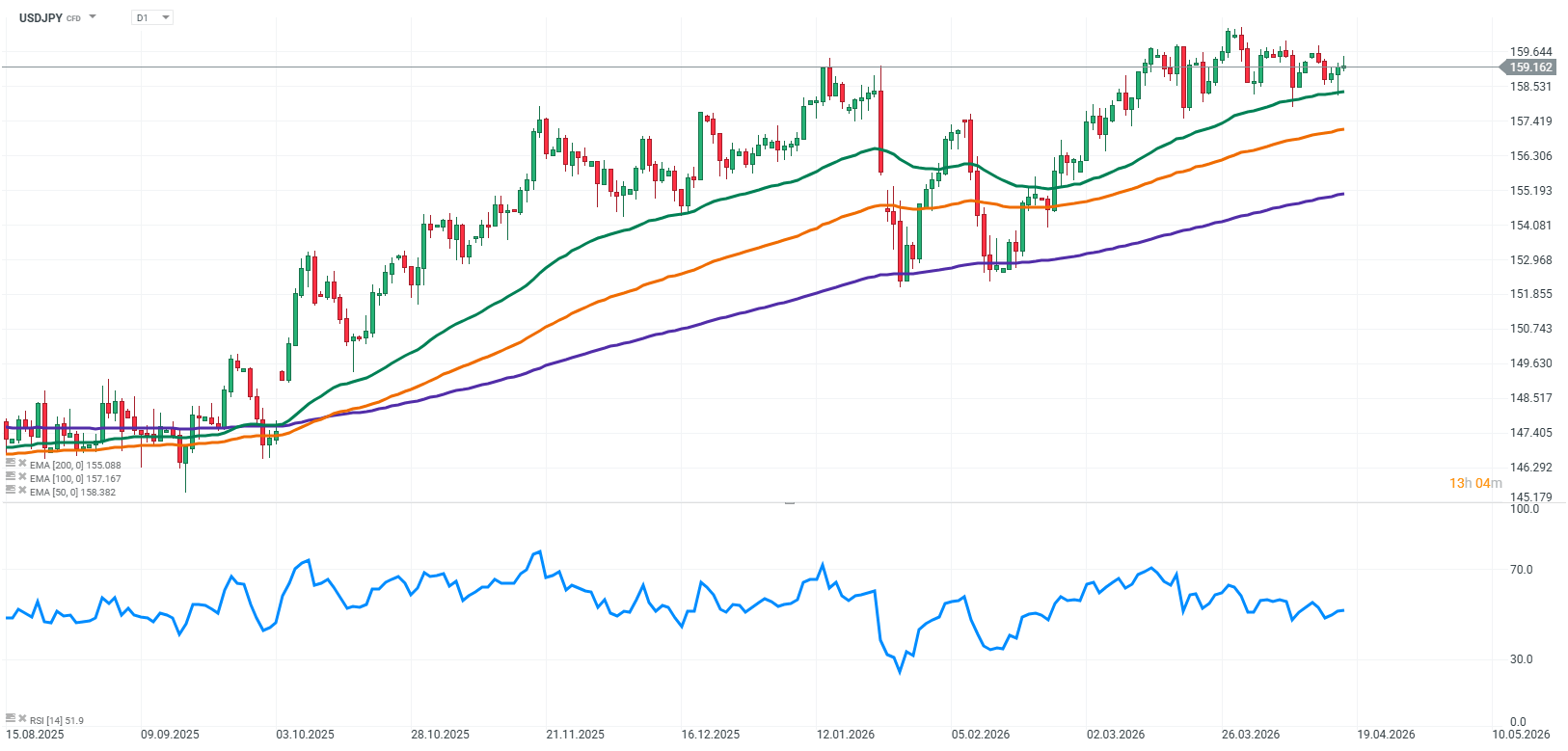 Navzdory rostoucí volatilitě kolem klíčových úrovní zůstává hlavním strukturálním faktorem široký rozdíl v úrokových sazbách mezi USA a Japonskem. Tento rozdíl nadále podporuje sílu amerického dolaru a udržuje atraktivitu strategií carry trade. Účastníci trhu si však stále více uvědomují, že takové prostředí může přetrvávat delší dobu, aniž by bylo stabilní, zejména když se USDJPY přibližuje úrovním vnímaným jako citlivé z pohledu intervenčního rizika.