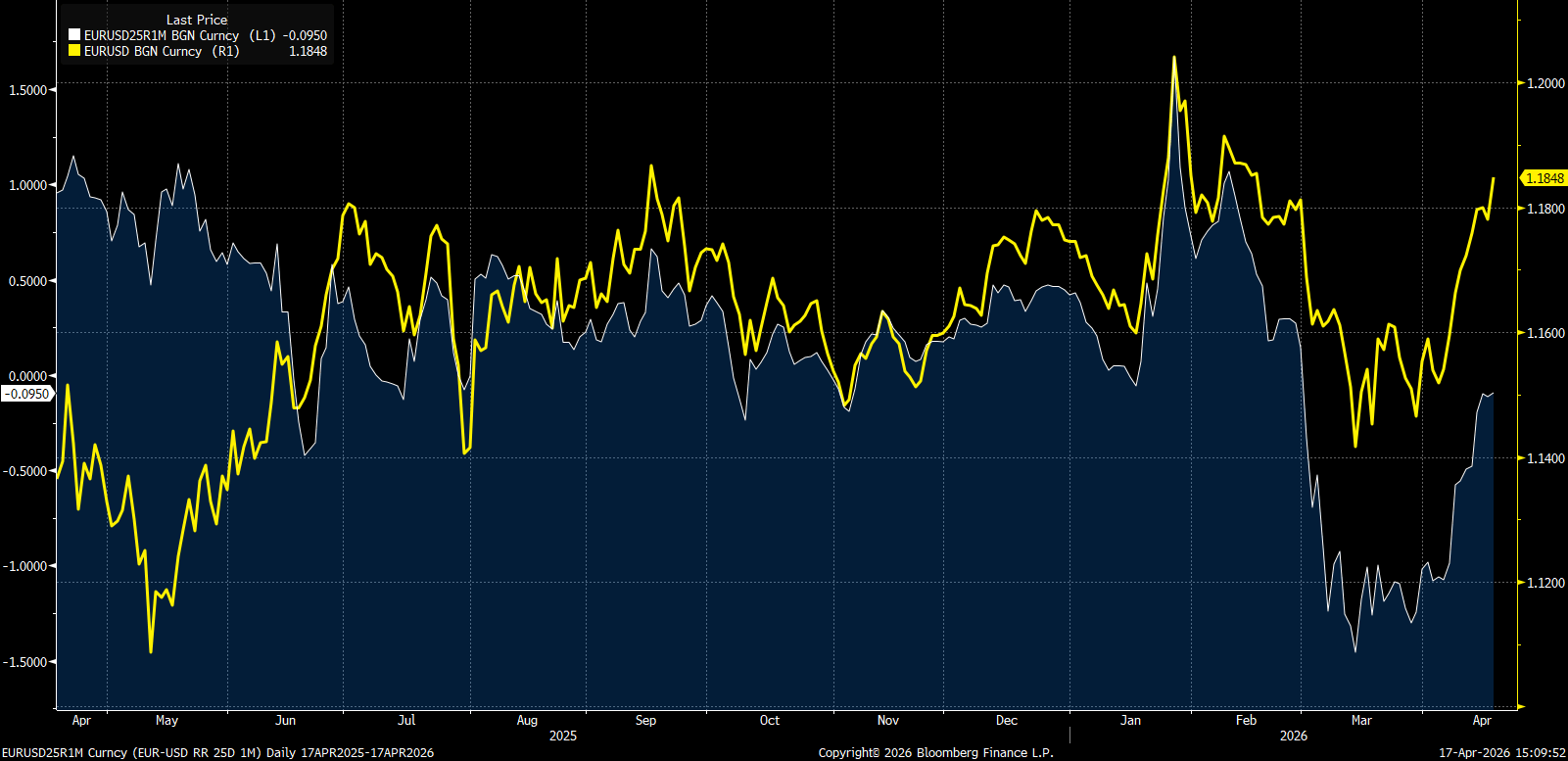S postupnou deeskalací konfliktu na Blízkém východě se měnová politika znovu stane hlavním zdrojem volatility na devizovém trhu. Už dva týdny sledujeme jasný pokles výnosů dluhopisů na obou stranách Atlantiku, což naznačuje, že investoři už delší dobu zaceňují pokles rizika dlouhodobého růstu cen energií, a tím i globálního návratu ke zvyšování sazeb. Swapový trh už přestal zaceňovat zvyšování sazeb v USA, zatímco v případě ECB nadále zůstává 98% pravděpodobnost jestřábího zvýšení o 25 bazických bodů v červenci. Pozice investorů dnes navíc podpořily výroky Madise Mullera z ECB, který uvedl, že „by nevylučoval krok v dubnu“. Tato slova však zazněla ještě před otevřením Hormuzského průlivu, což by přesto mělo vysvětlit tlak na spread mezi německými a americkými dluhopisy.