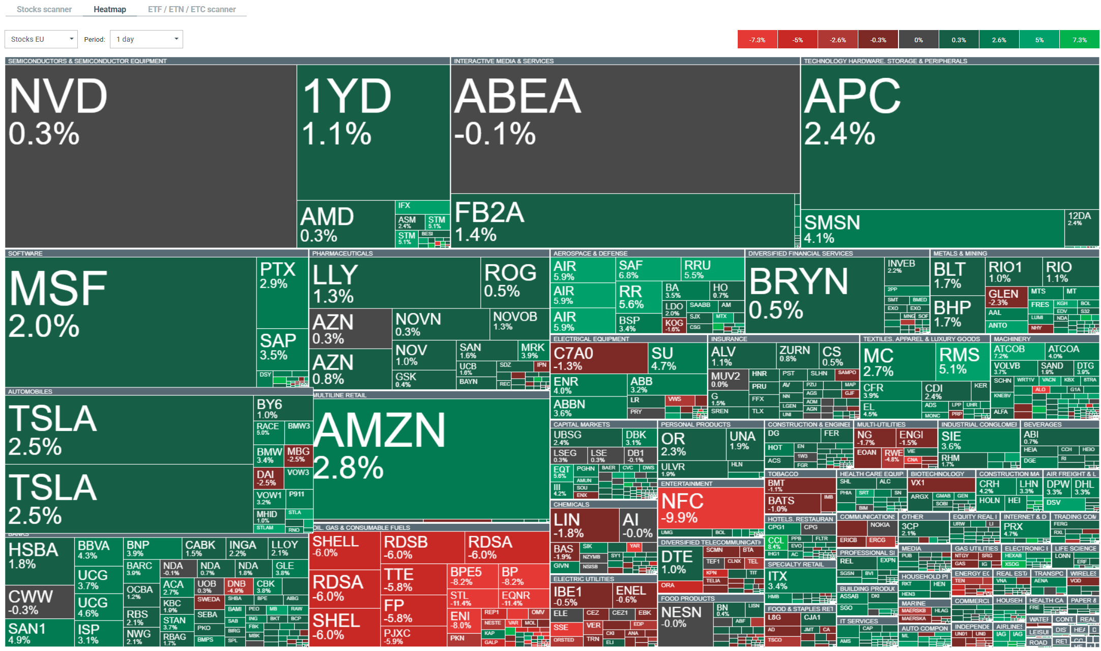 Jako region silně závislý na dovozu energií byla Evropa vůči dopadům blokády Hormuzského průlivu obzvlášť zranitelná. Právě tímto průlivem prochází přibližně 20 % světových dodávek ropy a zkapalněného zemního plynu. Ekonomové varovali, že trvale vysoké ceny energií mohou v eurozóně spustit inflační spirálu a zároveň podkopat konkurenceschopnost průmyslu, domácí spotřebu i firemní marže. Deeskalace konfliktu tento scénář jako bezprostřední riziko odstraňuje, což trhy okamžitě zaceňují růstem napříč prakticky všemi sektory, od technologií přes průmysl až po finanční služby.