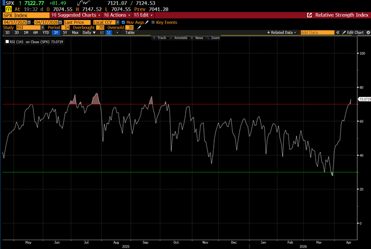 Americké akcie – ty v indexu Standard & Poor’s 500, se z pásma přeprodání přetočily do nynějšího pásma překoupení během pouhých 11 dní. Do pásma překoupení se dostaly už včera, přičemž dnešní otevření Hormuzského průlivu jejich překoupenost ještě umocňuje (viz 2. graf níže: pod zelenou linií je pásmo přeprodání, nad červenou pásmo překoupení). Rychleji to v období od roku 1950 stihly pouze v srpnu 1982.