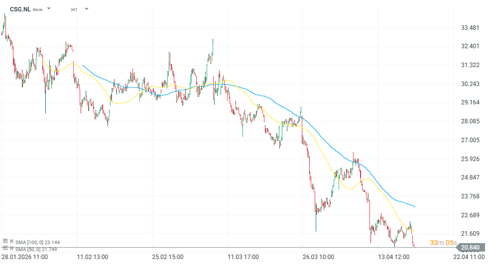 Vývoj akcií CSG je tak pro investory nadále velmi negativní. Od své upisovací ceny 25 eur už titul ztrácí více než 16 %.