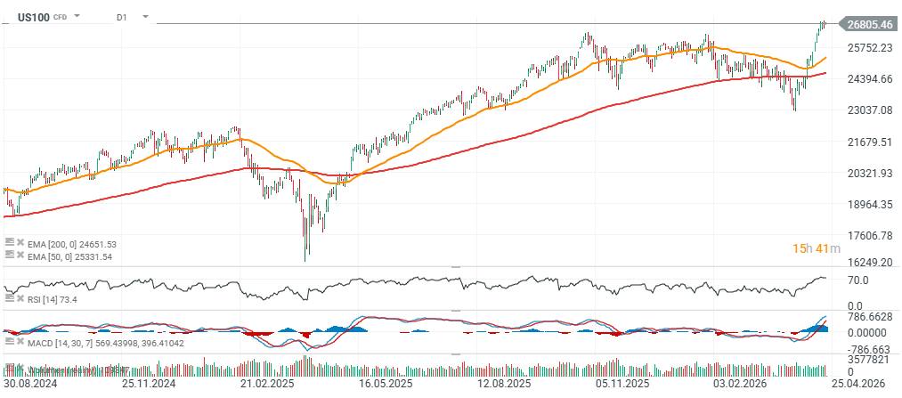 Index NASDAQ 100 (CME) (NQ) - Intradenní výhled 22.4.2026