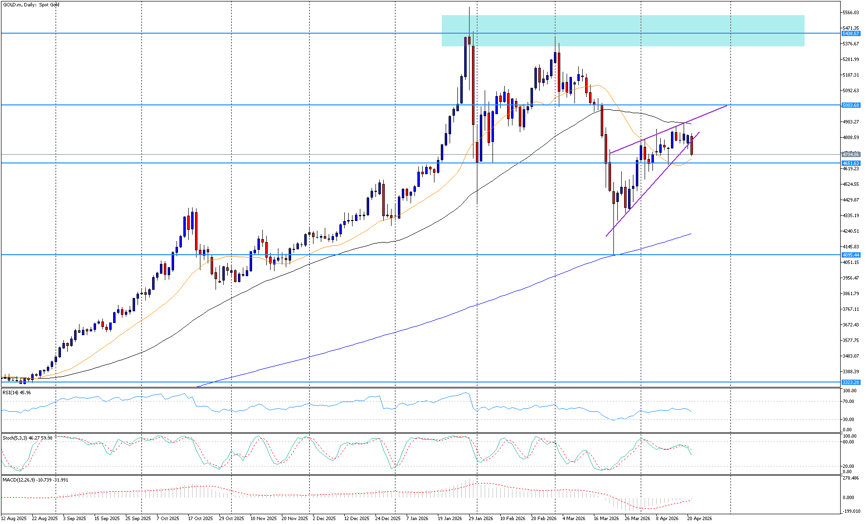 Zlato po třech týdnech výrazného růstu přešlo do klidnější fáze, když se mu opakovaně nepodařilo prorazit bariéru poblíž 4 900 USD. Tento neúspěch vedl ke ztrátě krátkodobého momenta a návratu ceny pod střednědobou vzestupnou trendovou linii, což signalizuje, že býci začínají ztrácet kontrolu nad vývojem. Trh se tak dostává do citlivé fáze, kde se rozhoduje o dalším směru. Technický obraz naznačuje postupné ochlazování předchozí rally. Oscilátory potvrzují slábnoucí dynamiku, přičemž RSI se stabilizuje kolem neutrálních hodnot a stochastický indikátor klesá z vyšších úrovní. Zároveň se cena opírá o krátkodobou vzestupnou trendovou linii, která tvoří spodní hranici formace vzestupného klínu. Tento pattern je často spojován s rizikem obratu směrem dolů, což zvyšuje pravděpodobnost, že by trh mohl projít korekční fází. Fundamentální prostředí zůstává mimořádně komplexní. Vývoj mezi Washingtonem a Teheránem nadále hraje klíčovou roli, přičemž nejistota kolem jednání a možného obnovení konfliktu drží investory v napětí. Paradoxně však právě eskalace nemusí automaticky znamenat růst zlata. Posilující americký dolar a rostoucí výnosy státních dluhopisů totiž zvyšují atraktivitu výnosových aktiv, což omezuje poptávku po drahých kovech. Dalším důležitým faktorem je vývoj inflačních očekávání. Rostoucí ceny energií zvyšují pravděpodobnost, že centrální banky budou nuceny udržovat vyšší úrokové sazby po delší dobu. To představuje pro zlato nepříznivé prostředí, jelikož jako bezvýnosové aktivum ztrácí konkurenceschopnost. Přesto však poptávka zcela nemizí, zejména ze strany centrálních bank, kde přetrvává dlouhodobý zájem o diverzifikaci rezerv. Krátkodobě se zdá, že trh balancuje mezi technickým tlakem na pokles a fundamentální nejistotou, která může kdykoli vyvolat nové nákupní impulzy. Pokud by cena prorazila pod aktuální trendovou linii, mohlo by dojít k hlubší korekci. Naopak udržení nad touto úrovní by mohlo poskytnout základ pro další pokus o růst. Z pohledu dalšího vývoje zůstává klíčová oblast kolem 4 900 USD. Její překonání by signalizovalo návrat kupců a otevřelo cestu k psychologické hranici 5 000 USD. Pokud by se trh dokázal udržet nad touto úrovní, mohl by se vytvořit prostor pro pokračování růstu směrem k vyšším rezistenčním pásmům a stabilizaci širšího býčího trendu. Celkově zlato vstupuje do fáze nerozhodnosti, kdy se střetávají protichůdné síly. Krátkodobý výhled zůstává nejistý, přičemž další směr bude záviset jak na technickém průlomu, tak na vývoji geopolitické a makroekonomické situace.