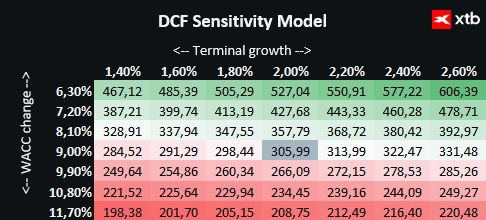 Valuace vychází ze základního scénáře projektovaných tržeb a zisků, který zahrnuje pokračující růst v oblasti datových center, infrastruktury a průmyslové automatizace. Předpoklady týkající se nákladů kapitálu (WACC) a dlouhodobého růstu jsou konzervativní a odrážejí stabilní, ale stále rostoucí profil byznysu.