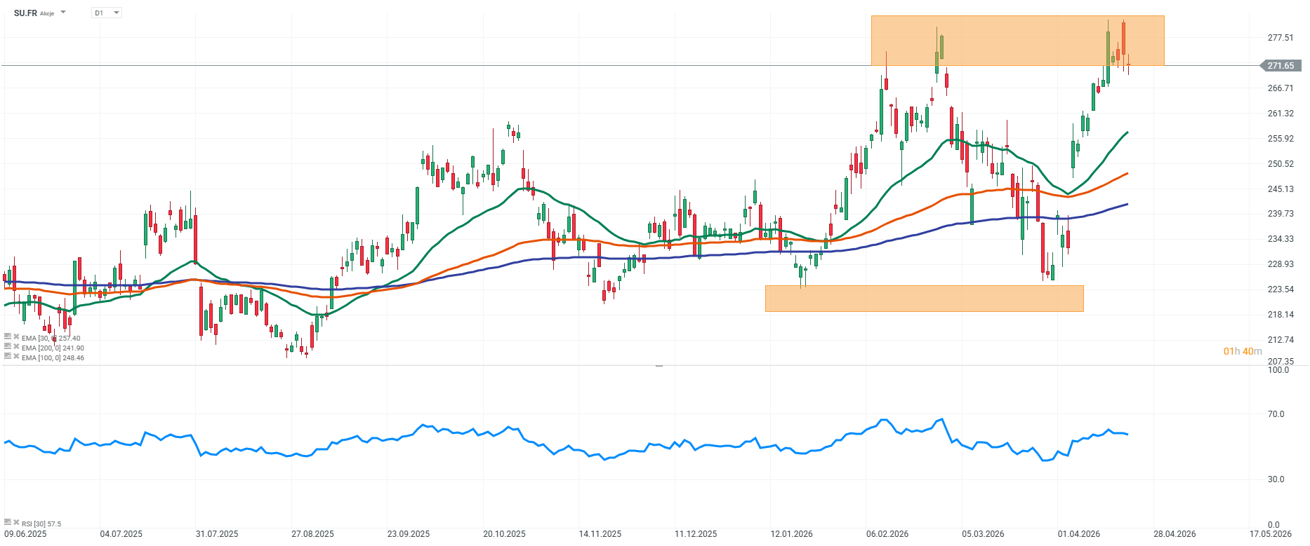 Z fundamentálního pohledu tato struktura odpovídá výkonnosti společnosti. Schneider Electric působí v prostředí rostoucí poptávky po energii, automatizaci a infrastruktuře pro datová centra, což se promítá do stabilní poptávky a solidních vyhlídek na růst tržeb.