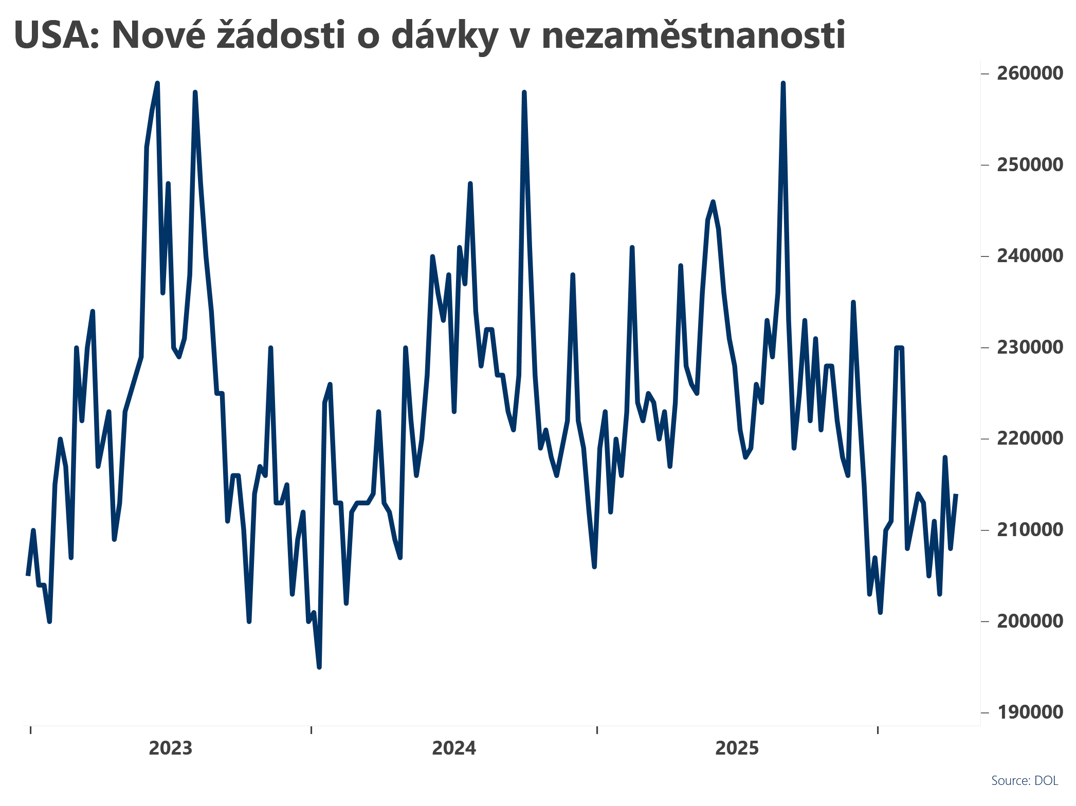 Nové žádosti o dávky v nezaměstnanosti v minulém týdnu klesly na 213 tis. oproti revidovaným 215 tis. v předminulém týdnu. Trhy očekávaly 215 tis. nových žádostí. -