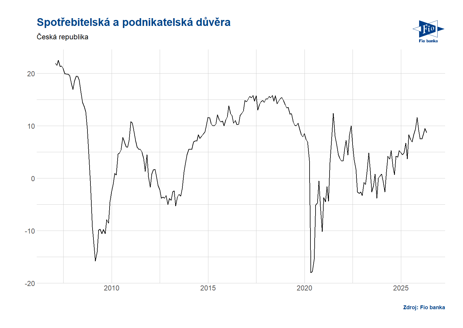 Klíčová slova: Bloomberg | Index | Banka | Fio banka | Fio | Podnikatelská důvěra | Očekávání | Index spotřebitelské důvěry | Očekávání trhu | ČR | Důvěra | 3М | Jakub Němec | Fio banka, a.s. |