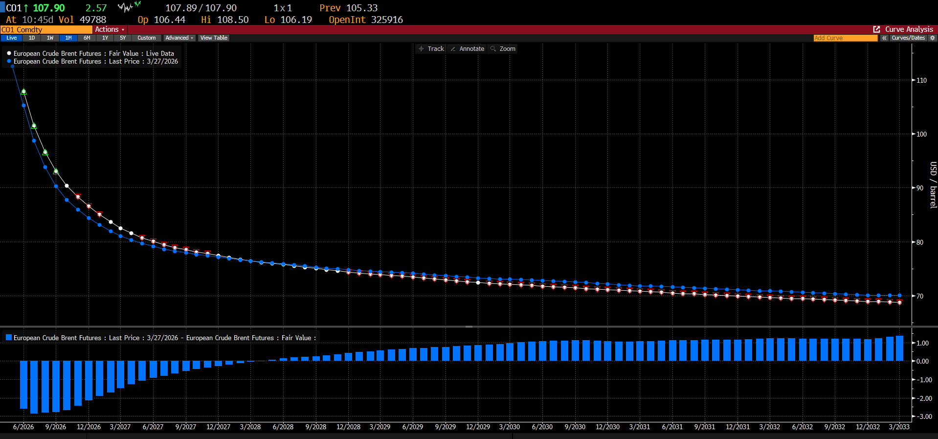 Trh zůstává ve výrazné backwardation, kdy se spotové ceny a kontrakty na předním konci křivky obchodují znatelně výše. Nedávno byl spread mezi fyzickou ropou, tedy Dated Brent, a nejbližším měsíčním kontraktem až 15 USD. Od té doby se zúžil pod 10 USD a dostal se na úrovně 6–7 USD. To neznamená, že trh už není napjatý. Spíše to odráží růst dlouhého konce křivky a určité ničení poptávky.