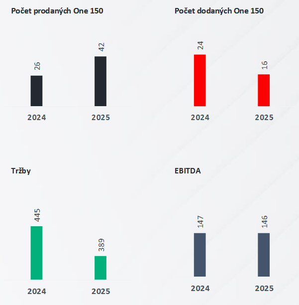 Společnost v roce 2025 prodala rekordních 42 bezpilotních letounů One 150 (v roce 2024: 26), zatímco počet dodaných strojů klesl na 16 z předchozích 24.