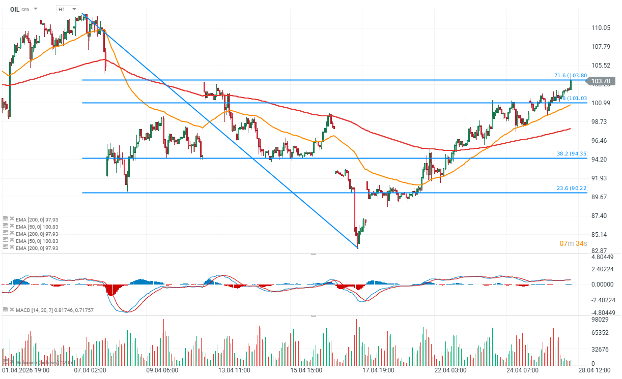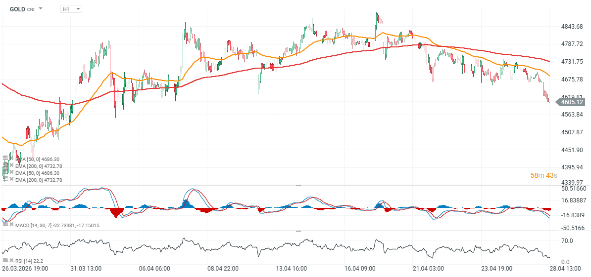 Obchodní signály pro ZLATO na 27.–30. dubna 2026: nákup nad 4 650 USD nebo prodej pod 4 700 USD (21 SMA – 7/8 Murray)