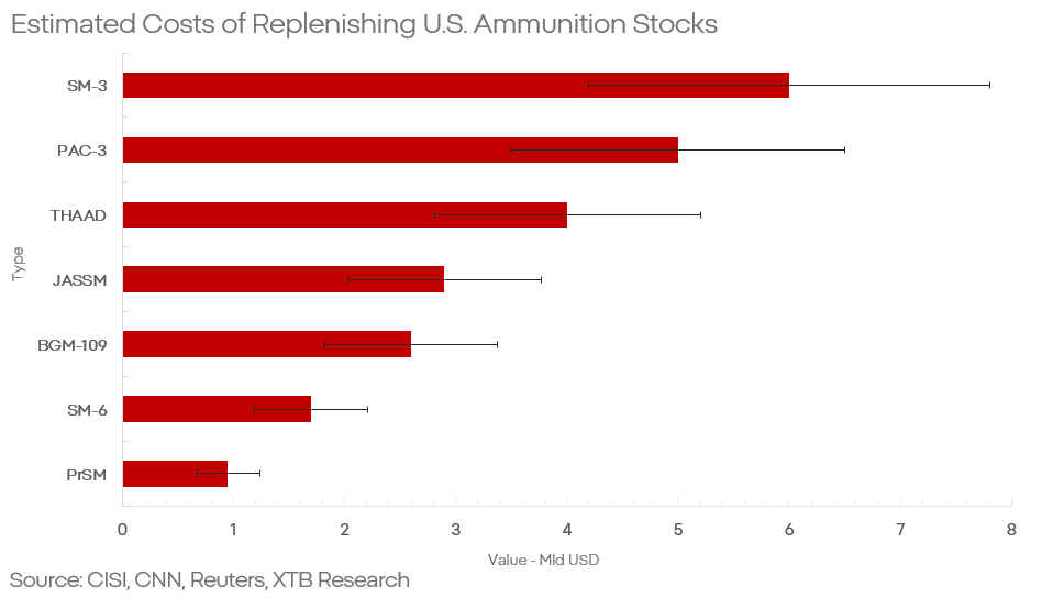 Pokud vezmeme v úvahu pouze doplnění zásob a budeme vycházet z veřejně dostupných údajů o cenách a minulých objednávkách, implikuje to částky zhruba 20–30 miliard USD během přibližně čtyř let.