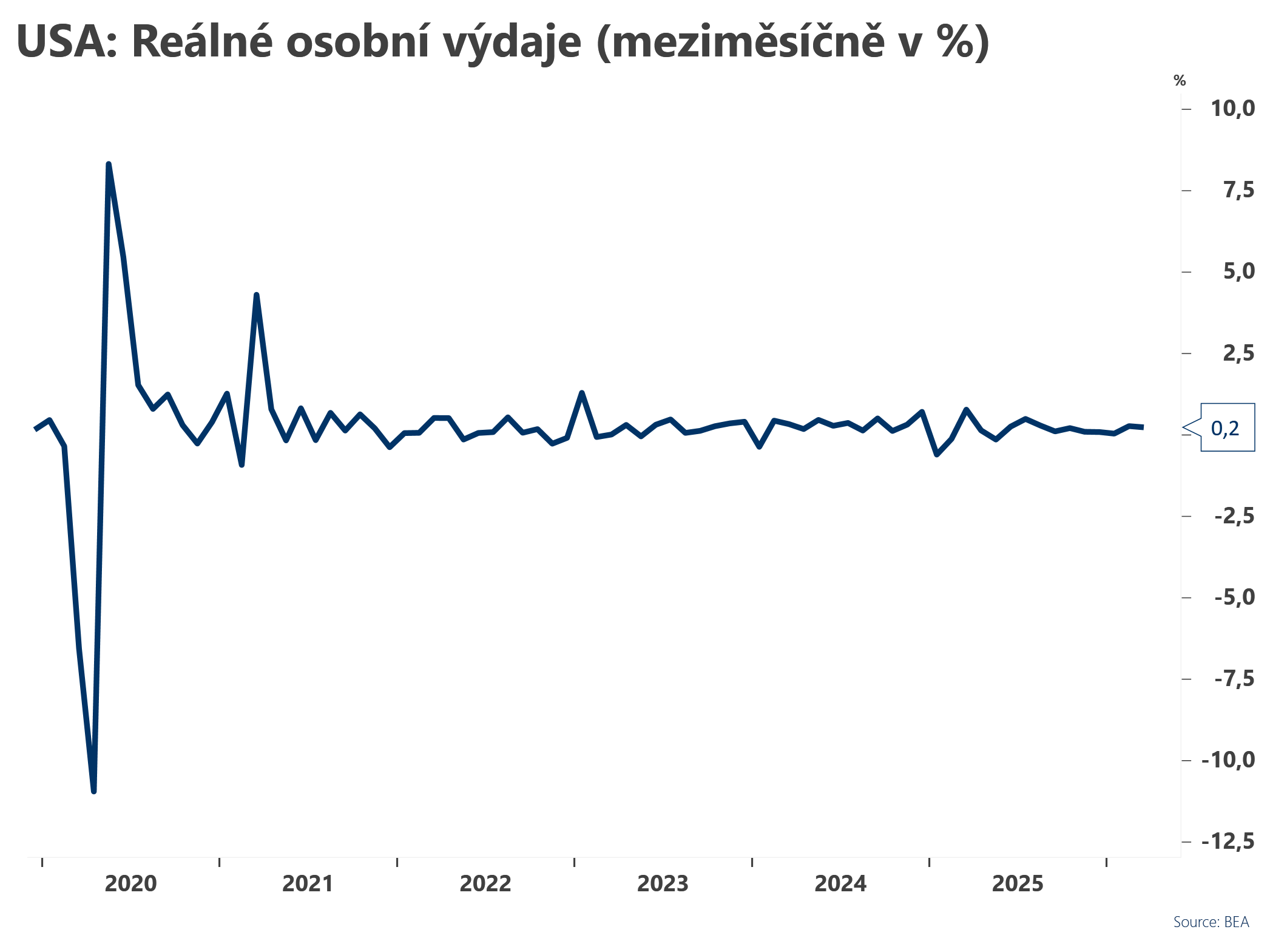 Reálné osobní výdaje v listopadu vzrostly podle očekávání trhů o 0,3 % meziměsíčně oproti 0,1 % v říjnu. -