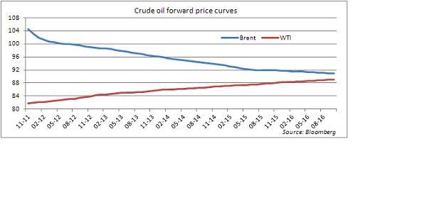Forwardové křivka ropy Brent nadále oceňuje pokles ekonomického zpomalení a to bude také limitovat v dalších týdnech prostor pro růst. Aktuálně je oceněn také pokles ceny Brent pod 100 dolarů, což by způsobilo problémy pro některé členy OPECu a Rusko, které požadují vysoké ceny, aby mohly vyrovnat rozpočty. Také to zvyšuje pravděpodobnost, že Saúdská Arábie přestane s nadměrnou produkcí, aby ceny vyrovnala.