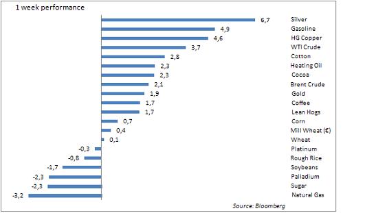 Dolar se po nedávné rally ustálil, což komoditám pomohlo se stabilizovat, navíc je třeba vzít v úvahu, že hedžové fondy v uplynulých týdnech snížily své dlouhé expozice v komoditách na polovinu.